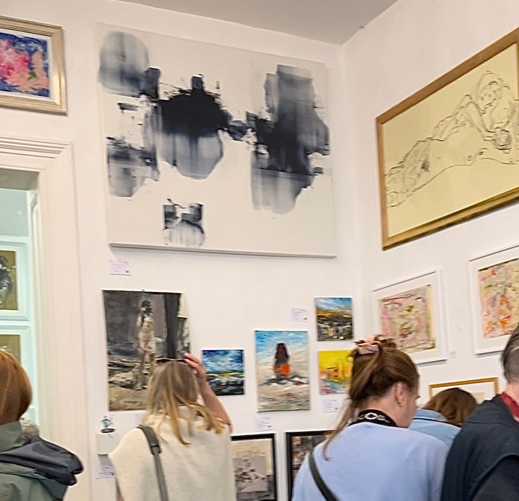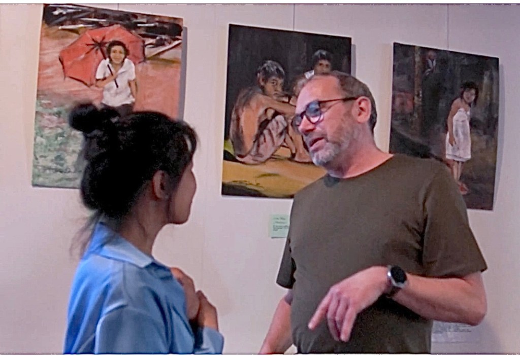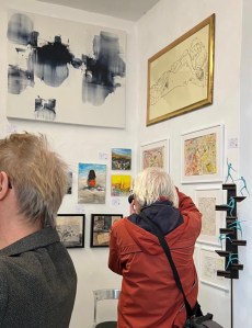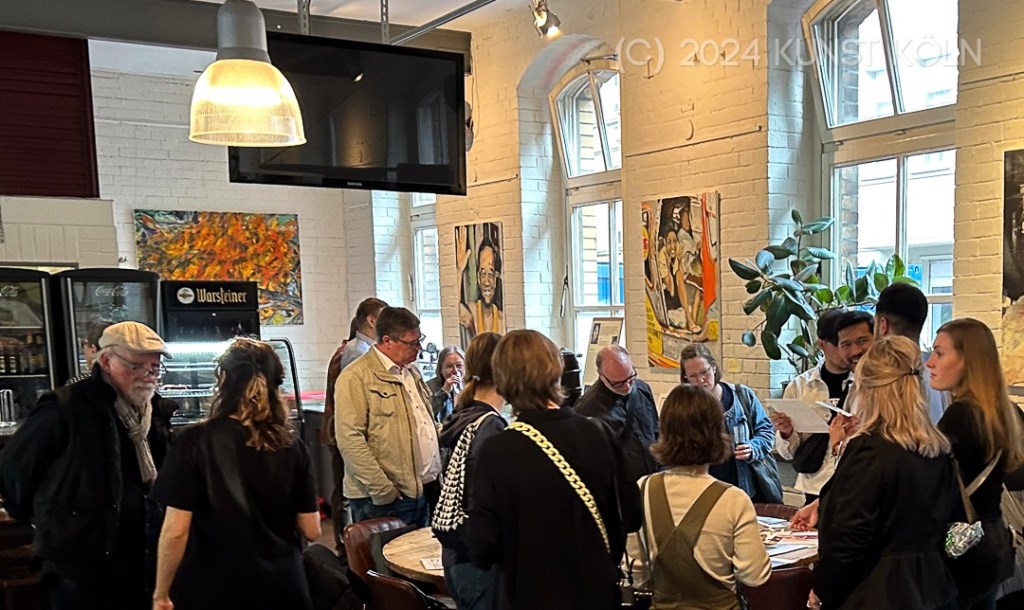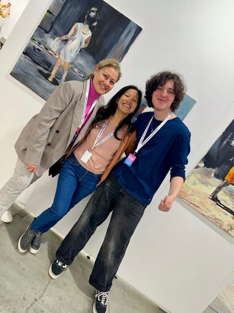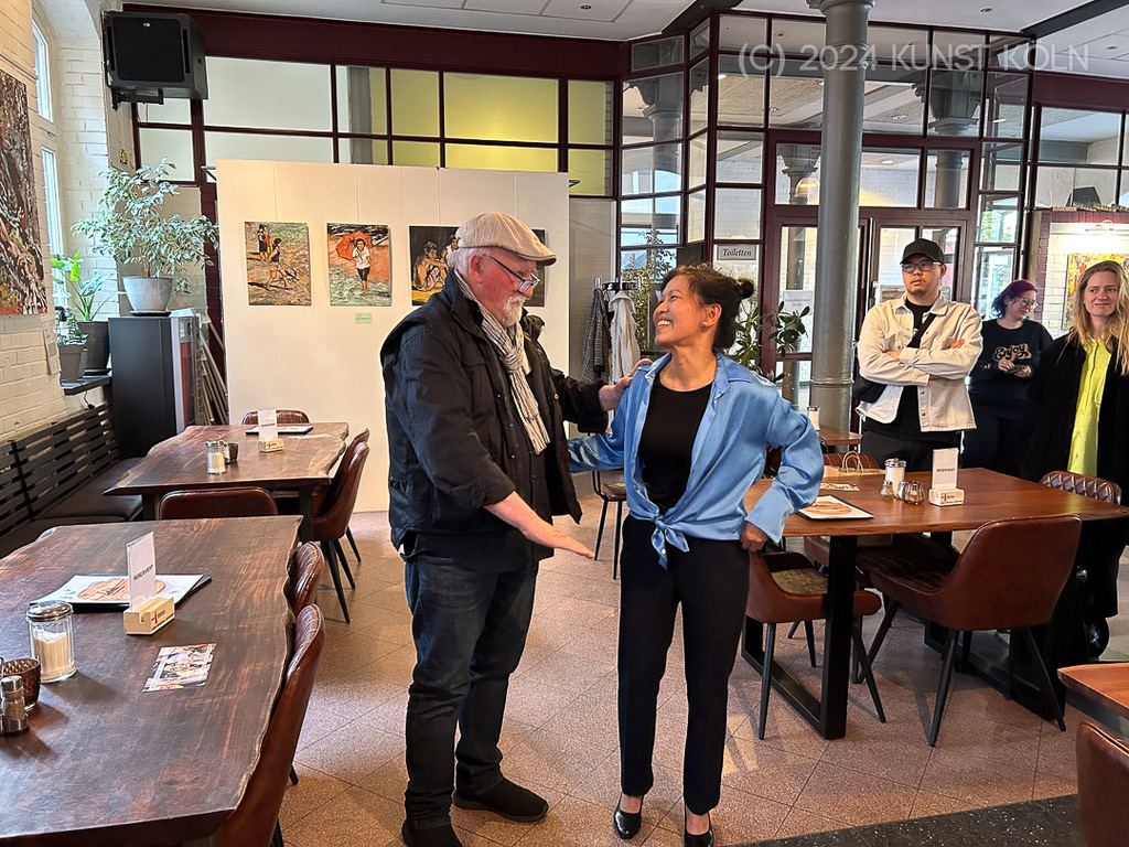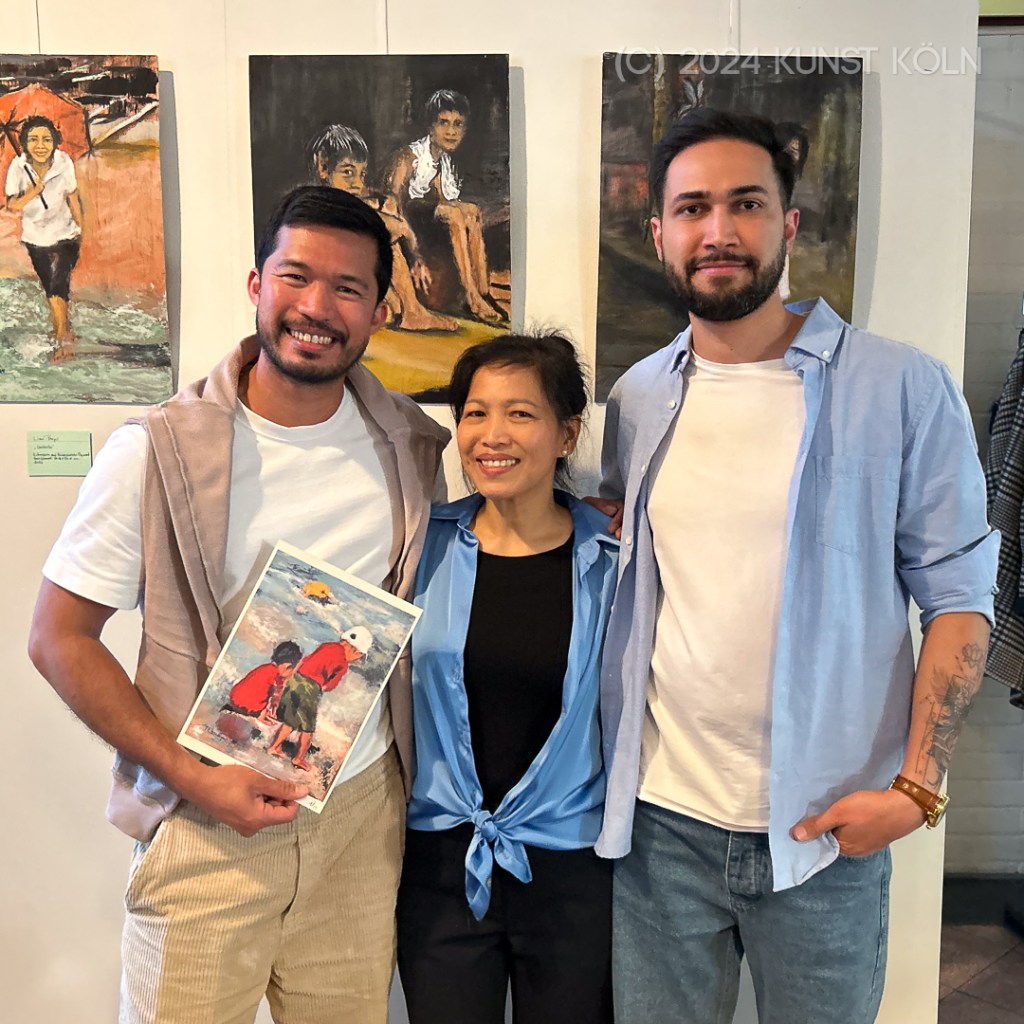 li. Jürgen Barnickel, mitte Jonas Heinevetter (im Hintergrund sind seine Kunstwerke)