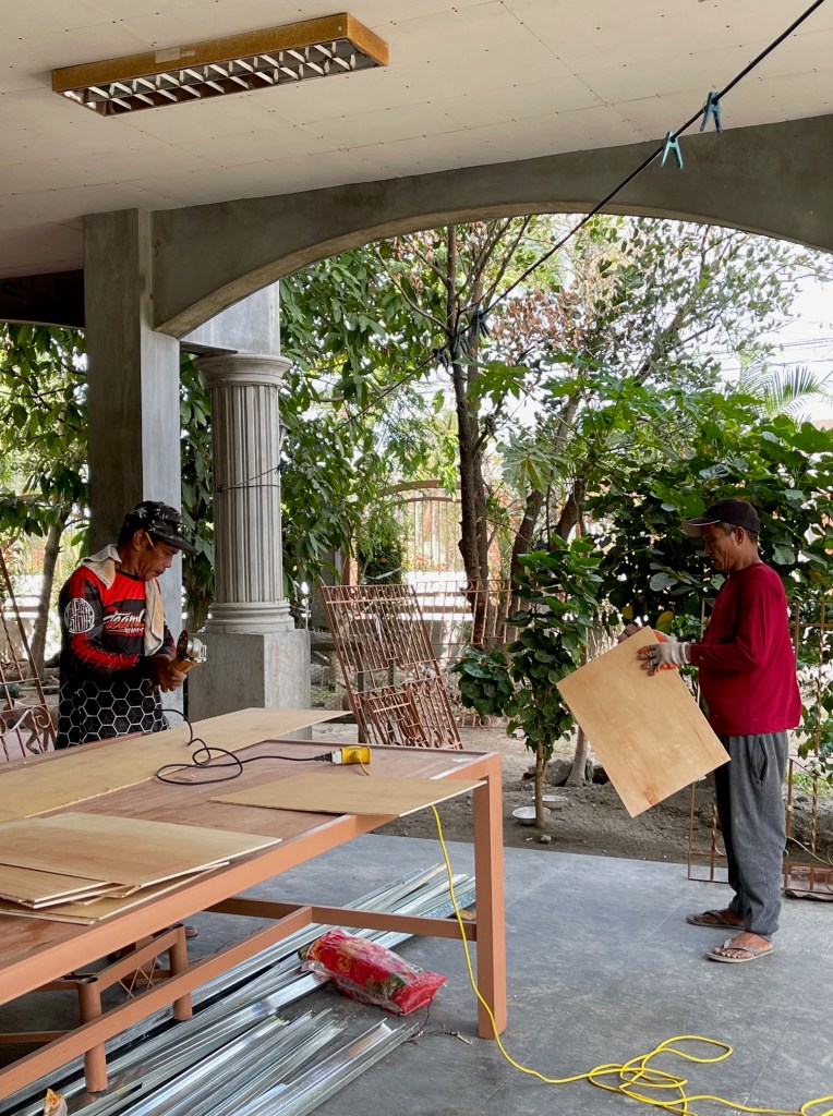 Das Plywood, ein tropisches Schichtholz, wird auf den Philippinen bearbeitet und für den Transport nach Deutschland zugeschnitten.