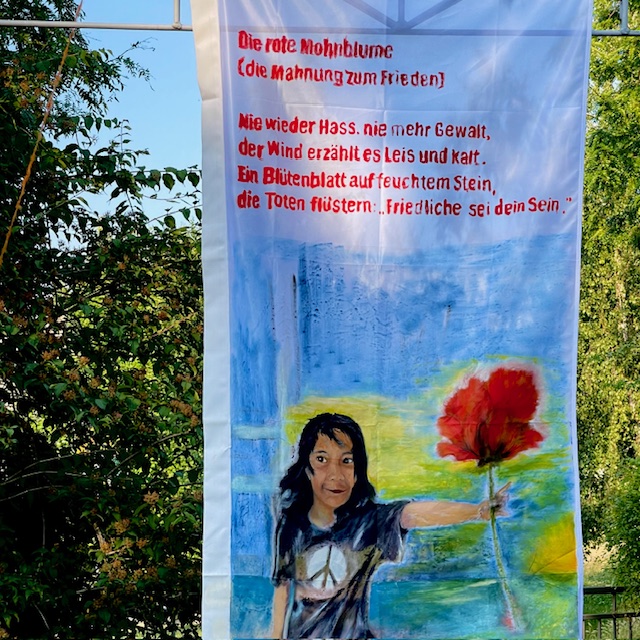 Die rote Mohnblume, Eitempera auf Fahnenstoff, 2025