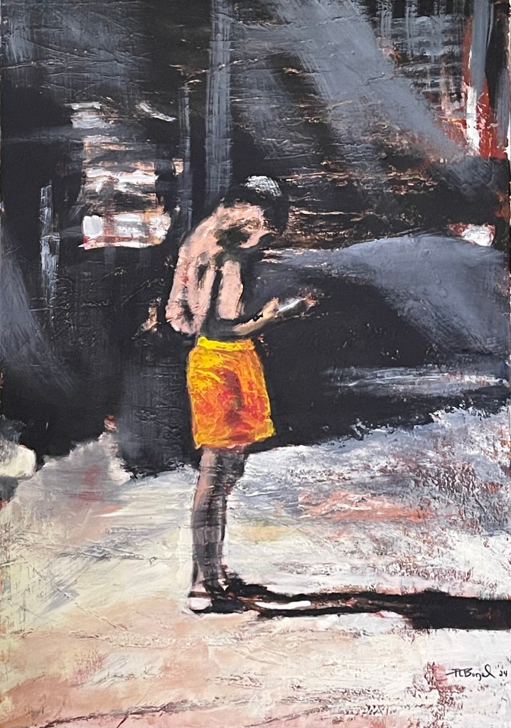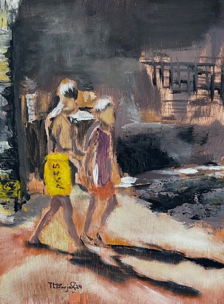 Aufgewachsen in der Nähe von Manila, war ich von den kräftigen Farben, den üppigen Landschaften und der ungezähmten Kraft der Natur früh inspiriert. Mit 16 Jahren zog ich allein nach Deutschland, doch die Verbundenheit zur philippinischen Kultur und zur Malerei blieb zentral für mein Leben. Heute setze ich überwiegend auf Eitempera und arbeite mit der Spachteltechnik, die meinen Bildern eine besondere Struktur und greifbare Tiefe verleiht. Ebenso experimentiere ich mit Malerei auf Plywood – einem tropischen Schichtholz, das für mich eine symbolische Verbindung zu meiner Heimat darstellt.