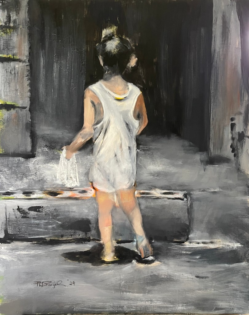 Im Zentrum meiner Kunst steht das Leben „zwischen zwei Welten“ – ein Spannungsfeld, das die Dynamik von Herkunft und Aufbruch, von Osten und Westen erkundet. Dabei verweben meine Arbeiten persönliche Erfahrungen mit universellen Themen wie Identität, Migration und kultureller Überschneidung. Ein zentraler Aspekt meines Schaffens ist die Auseinandersetzung mit der philippinischen Kultur, deren Lebensphilosophie „Bahala Na“ – „Was auch immer passiert, passiert; am Ende wird alles gut“ – eine optimistische Resilienz verkörpert. Diese Haltung, tief verwurzelt in den Menschen meiner Heimat, prägt sowohl meine Kunst als auch meine persönliche Sicht auf die Welt.